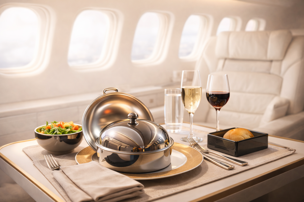 Premium inflight catering crafted for private and VIP aviation, tailored to passenger preferences, dietary needs, and flight requirements.